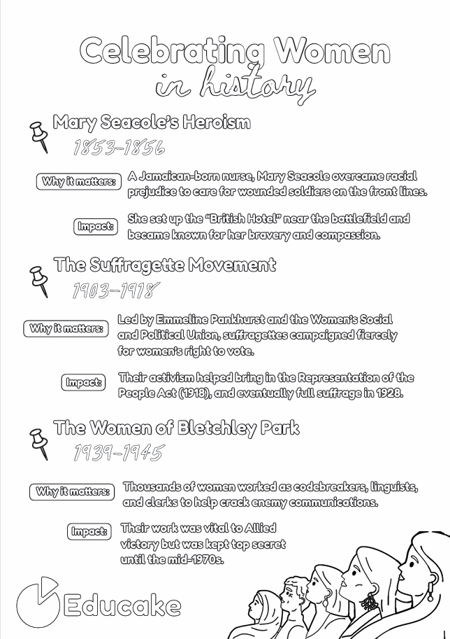 These stories do more than celebrate extraordinary women. They spark curiosity, challenge assumptions and open up rich conversations about courage, equality and the power of collective action. We hope the poster brings a burst of inspiration to your classroom and supports the brilliant discussions you are already having with your students.